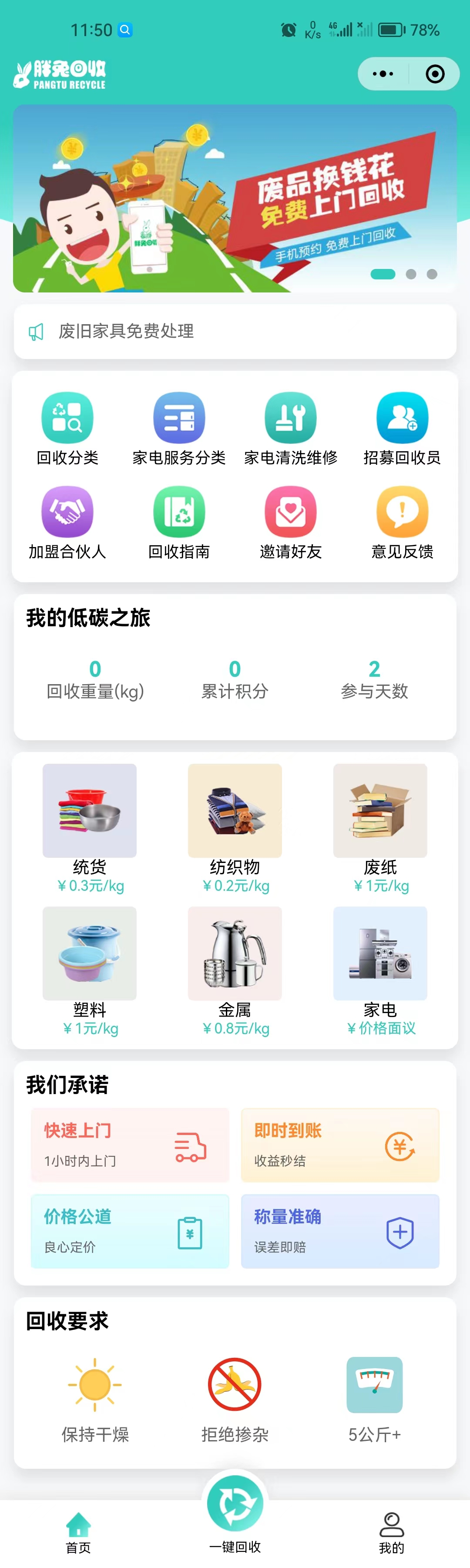 胖兔回收小程序为了便于用户预约时间上门回收废品,同时节省了回收人员等待时间。